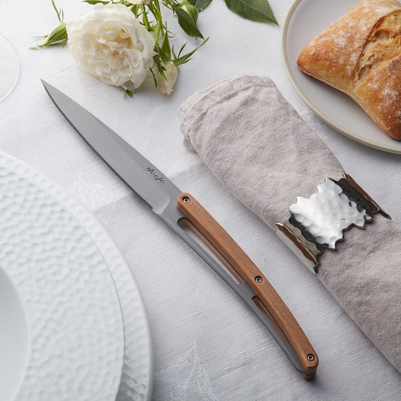 Les couteaux Deejo se marient très bien avec des fourchettes en argent et tout service de table élégant.