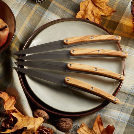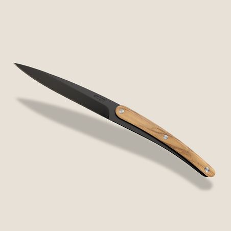 Avec leurs lames noires au style affirmé et un manche façon olivier aux nuances lumineuses, ces couteaux allient une élégance rare et avec facilité d’entretien déconcertante : 100% compatibles lave-vaisselle, ils ne nécessitent aucun affûtage tout en conservant un parfait tranchant grâce à leurs lames micro-dentées.