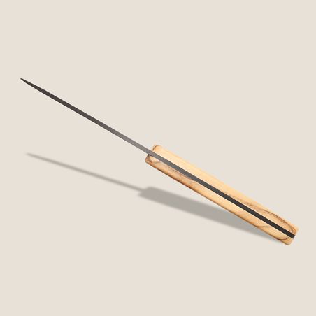 Ses manches en polycarbonate et ABS imitent avec un réalisme saisissant l’ébène, le palissandre ou le bois d’olivier, tout en offrant un avantage décisif : ils passent au lave-vaisselle, pour un entretien simple et régulier. Les lames micro-dentées assurent une coupe nette et constante dans la durée, sans nécessiter de réaffûtage pour conserver leur efficacité. Et parce que la performance n’exclut pas le plaisir, de superbes tatouages viennent signer chaque pièce avec une subtilité rare, transformant un ustensile du quotidien en objet désiré.