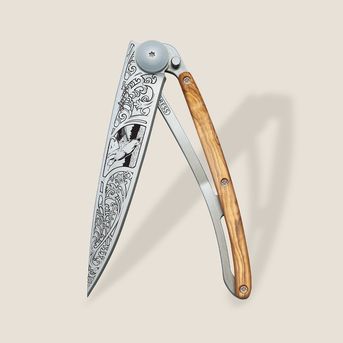 Mais ce n’est pas tout : facile à porter, à utiliser, à adopter, Deejo va au-delà du couteau en s’offrant la possibilité d’être « tatoué » : tatouer son couteau, comme l’on marquerait sa peau, c’est offrir à cet objet déjà très personnel, une tout autre dimension : son identité.