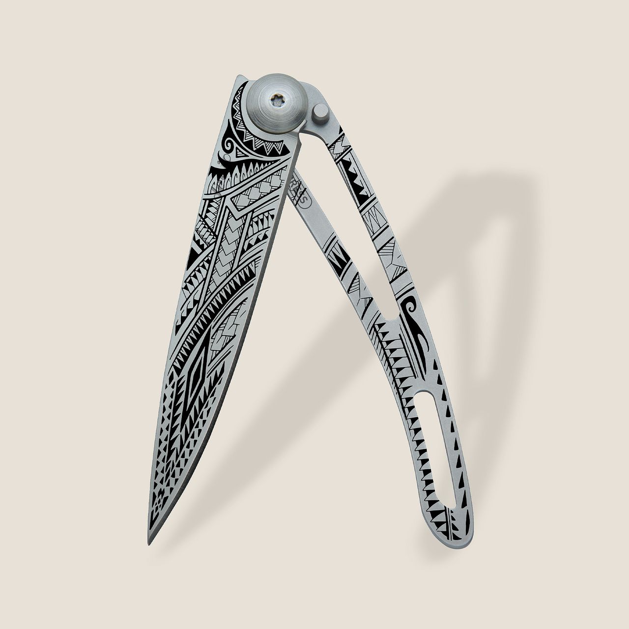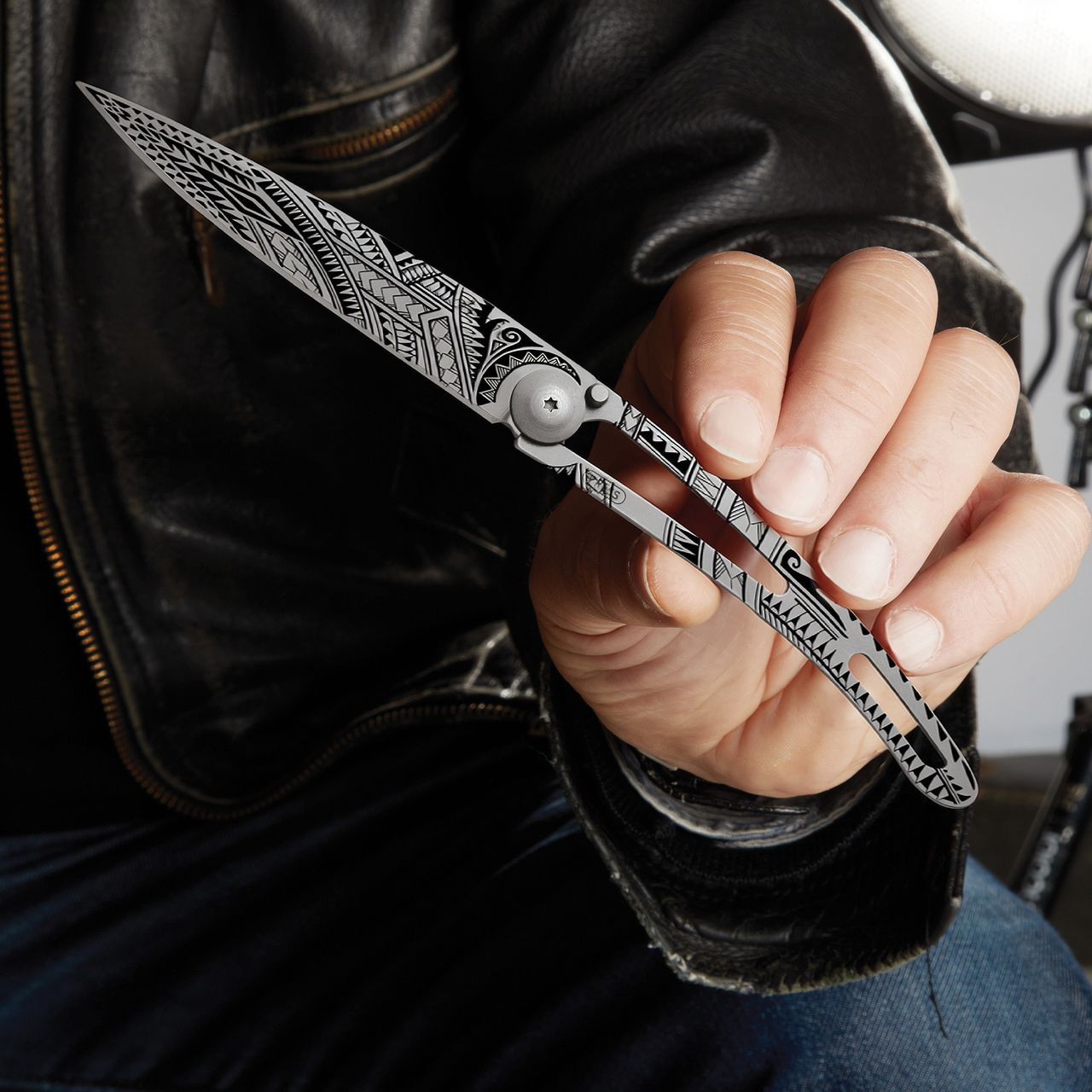 Mais ce n’est pas tout : facile à porter, à utiliser, à adopter, Deejo va au-delà du couteau en s’offrant la possibilité d’être « tatoué » : tatouer son couteau, comme l’on marquerait sa peau, c’est offrir à cet objet déjà très personnel, une tout autre dimension : son identité.