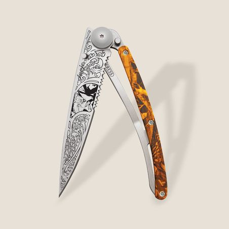 Mais ce n’est pas tout : facile à porter, à utiliser, à adopter, Deejo va au-delà du couteau en s’offrant la possibilité d’être « tatoué » : tatouer son couteau, comme l’on marquerait sa peau, c’est offrir à cet objet déjà très personnel, une tout autre dimension : son identité.