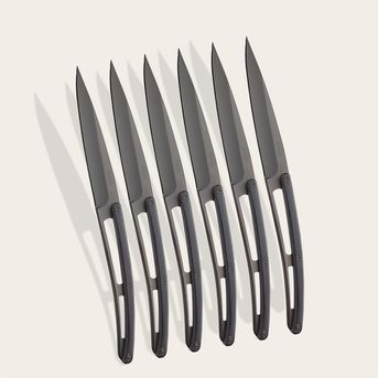 6 couteaux de table micro-dentés, titane, ébène