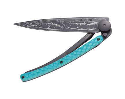 La version « une main » de nos Deejo carbones, avec une lame micro dentée pour une coupe radicale lors d’usages exigeants.
