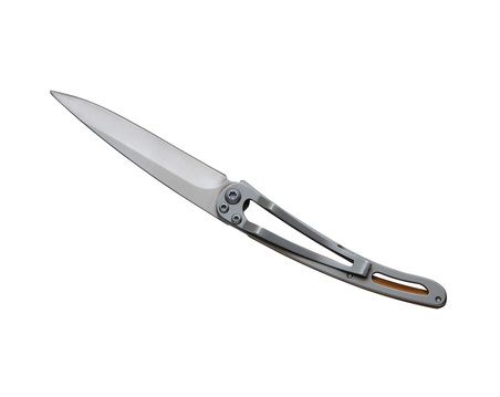 "Couteau ultra léger en acier inoxydable Z40C13, finition titane. Lame avec cran de sécurité de type 'liner lock'. Clip de ceinture. Le manche est orné d'une plaquette en loupe de genévrier.Le genévrier est un bois naturellement odorant, dont se dégage un parfum légèrement poivré. Tout en arabesque de beiges, chaque plaquette, finement nervurée, fait de votre Deejo une pièce unique et précieuse."""
